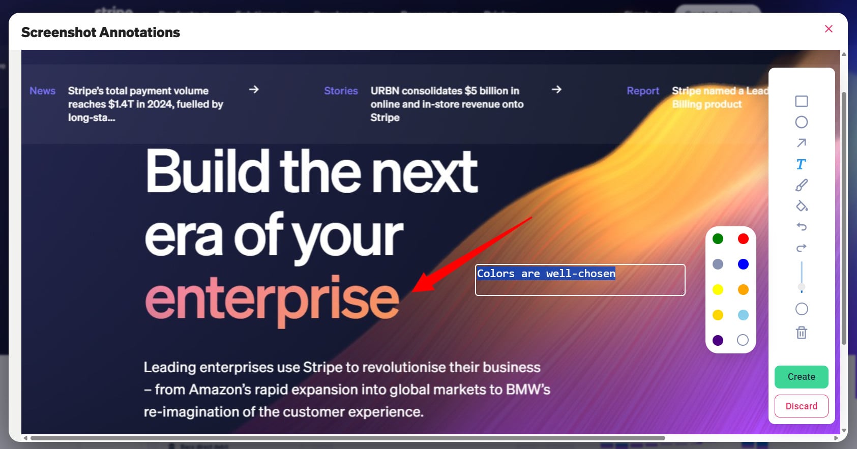 - Auto-Screenshot & Annotations: Atarim automatically captures a screenshot during task creation, highlighting the specific area where the feedback is provided. Additionally, clients can manually capture screenshots and use annotation tools to highlight and explain specific sections visually.