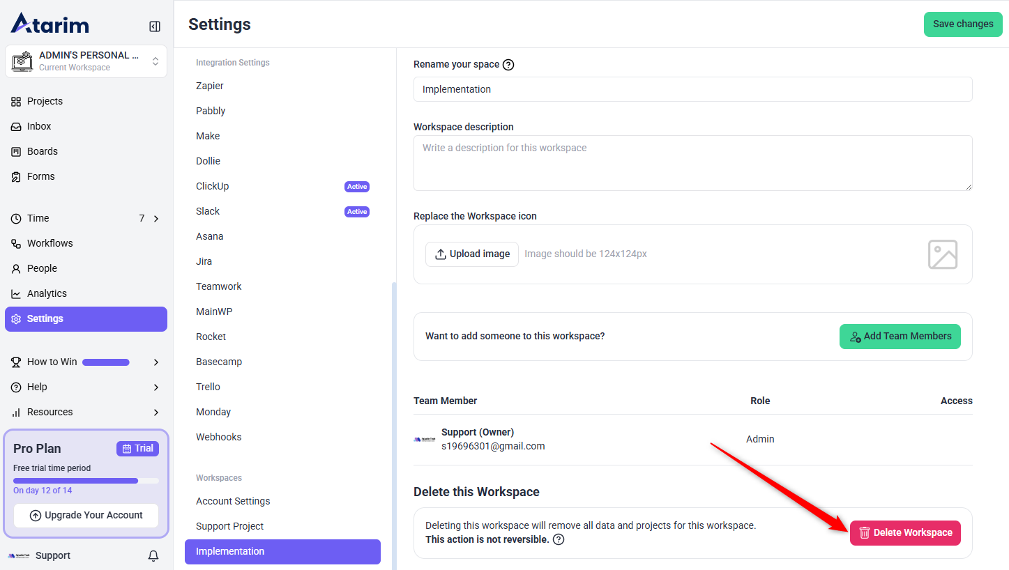 Easily delete unnecessary workspaces to keep your Atarim account organized.
