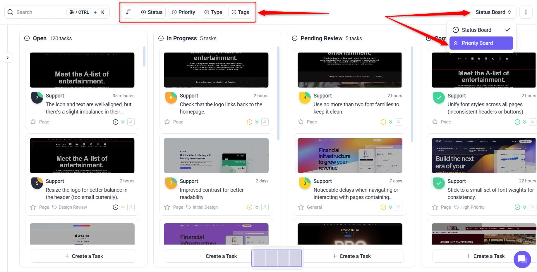 Tip: Use the Priority Board view to focus on high-impact tasks first.