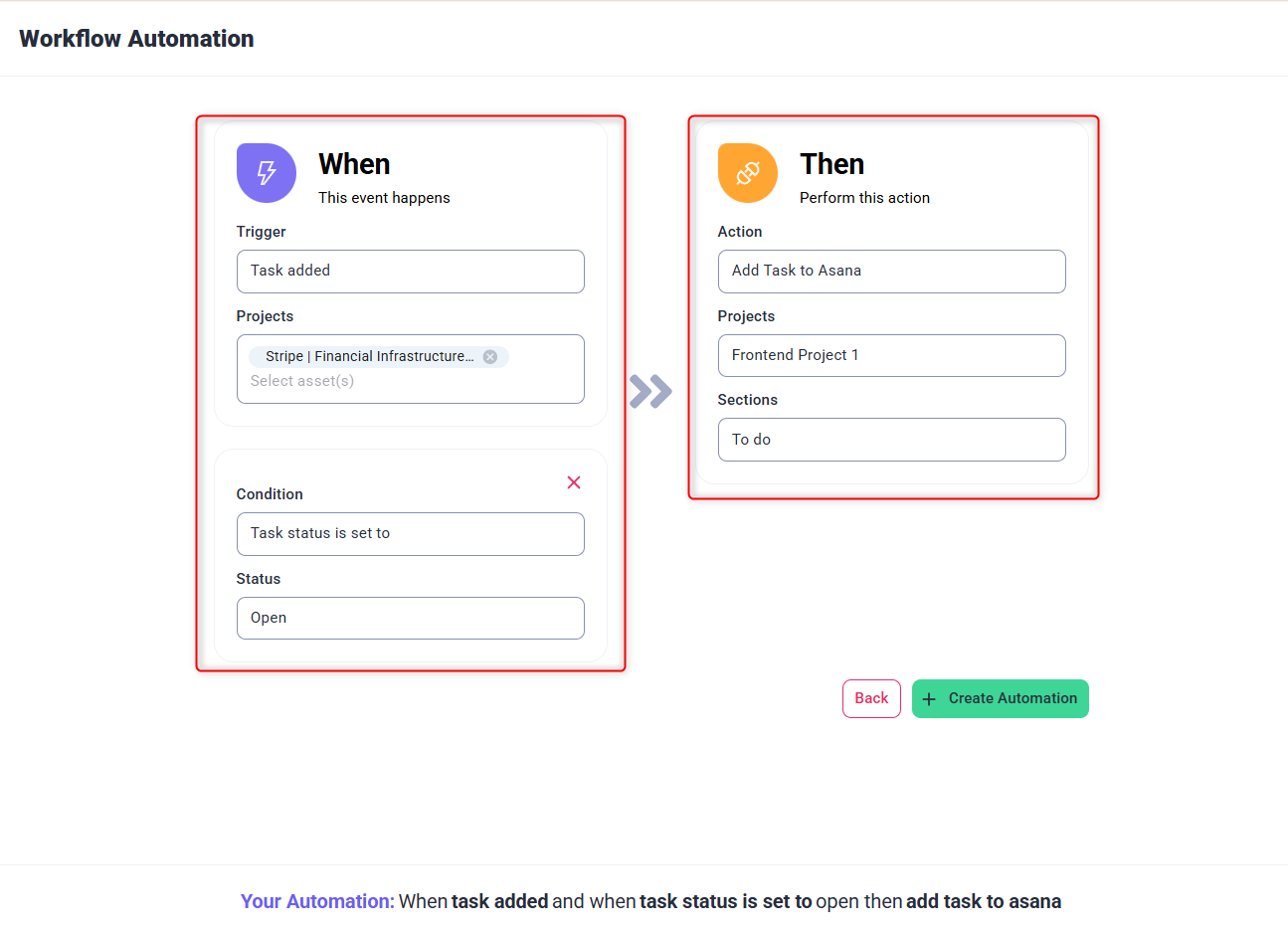 • Task created → Push to Asana