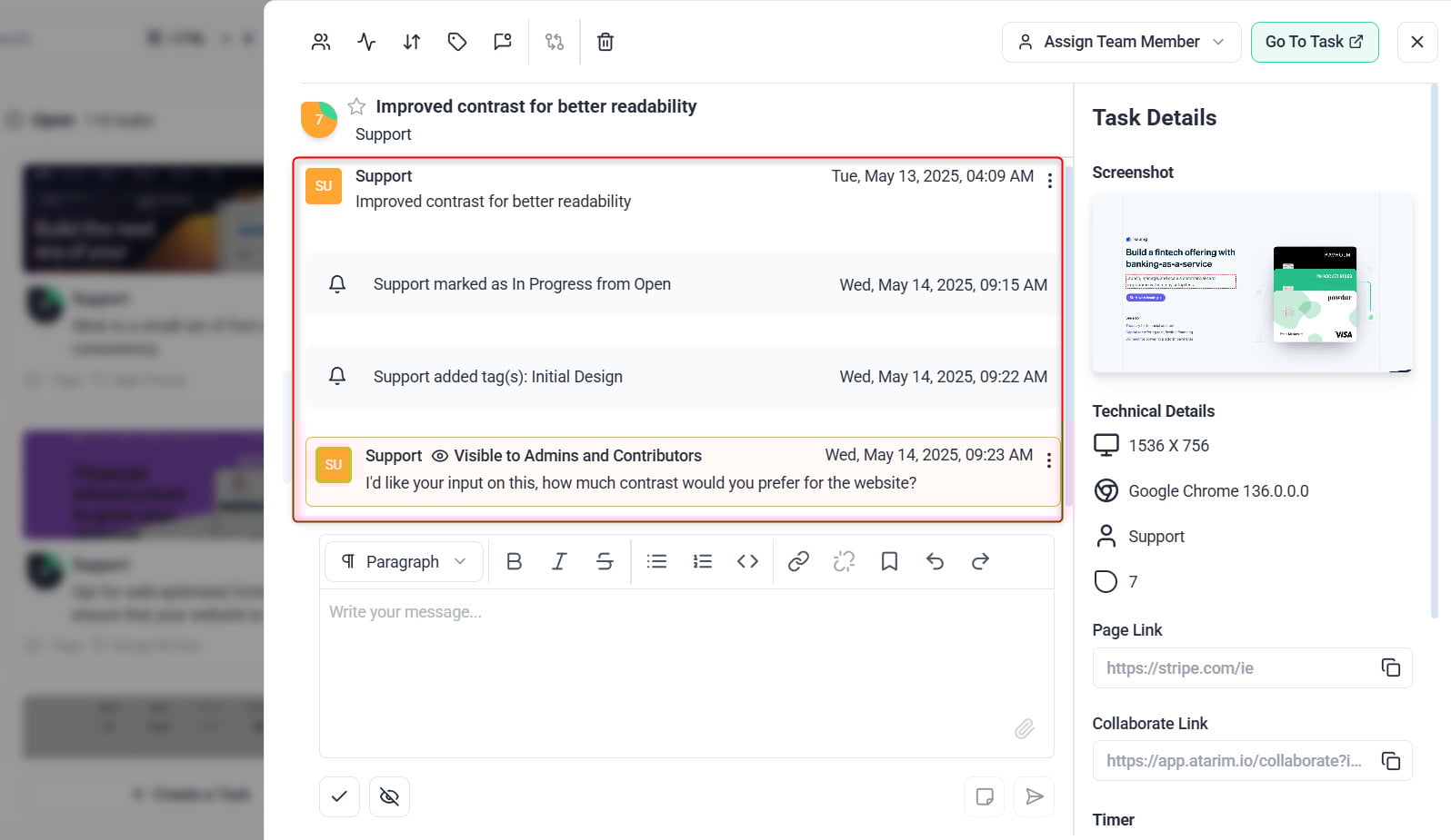 Use Atarim’s visual boards for an overview of task progress.