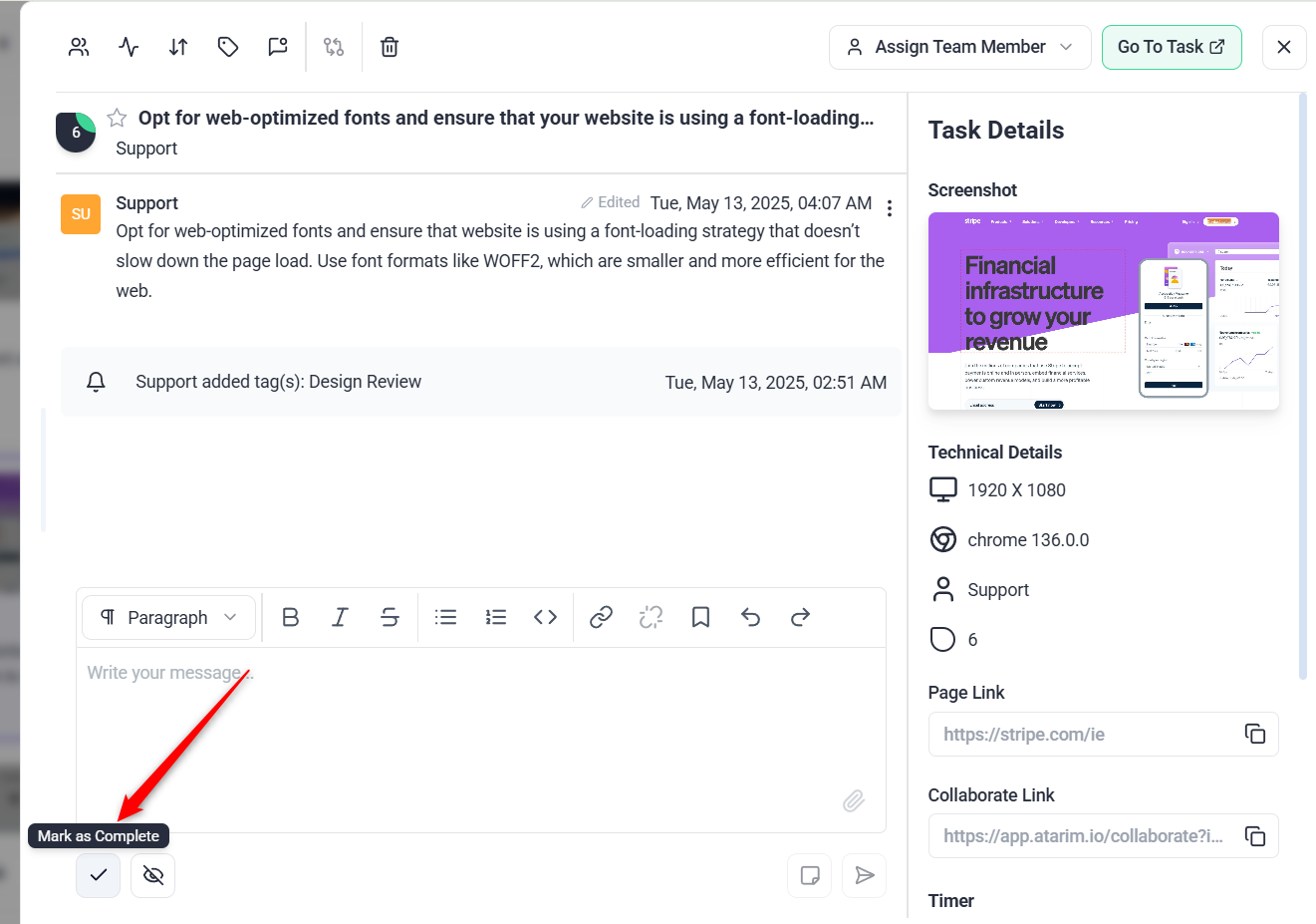 1. Open the task and click Mark as Complete.