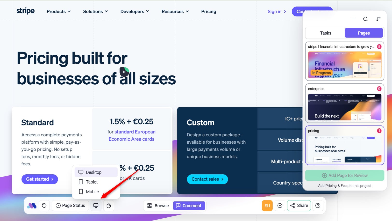 Example Use Case: A client reviews a design in all three views (desktop, tablet, mobile) and leaves specific feedback, eliminating the need for separate design reviews for each breakpoint.
