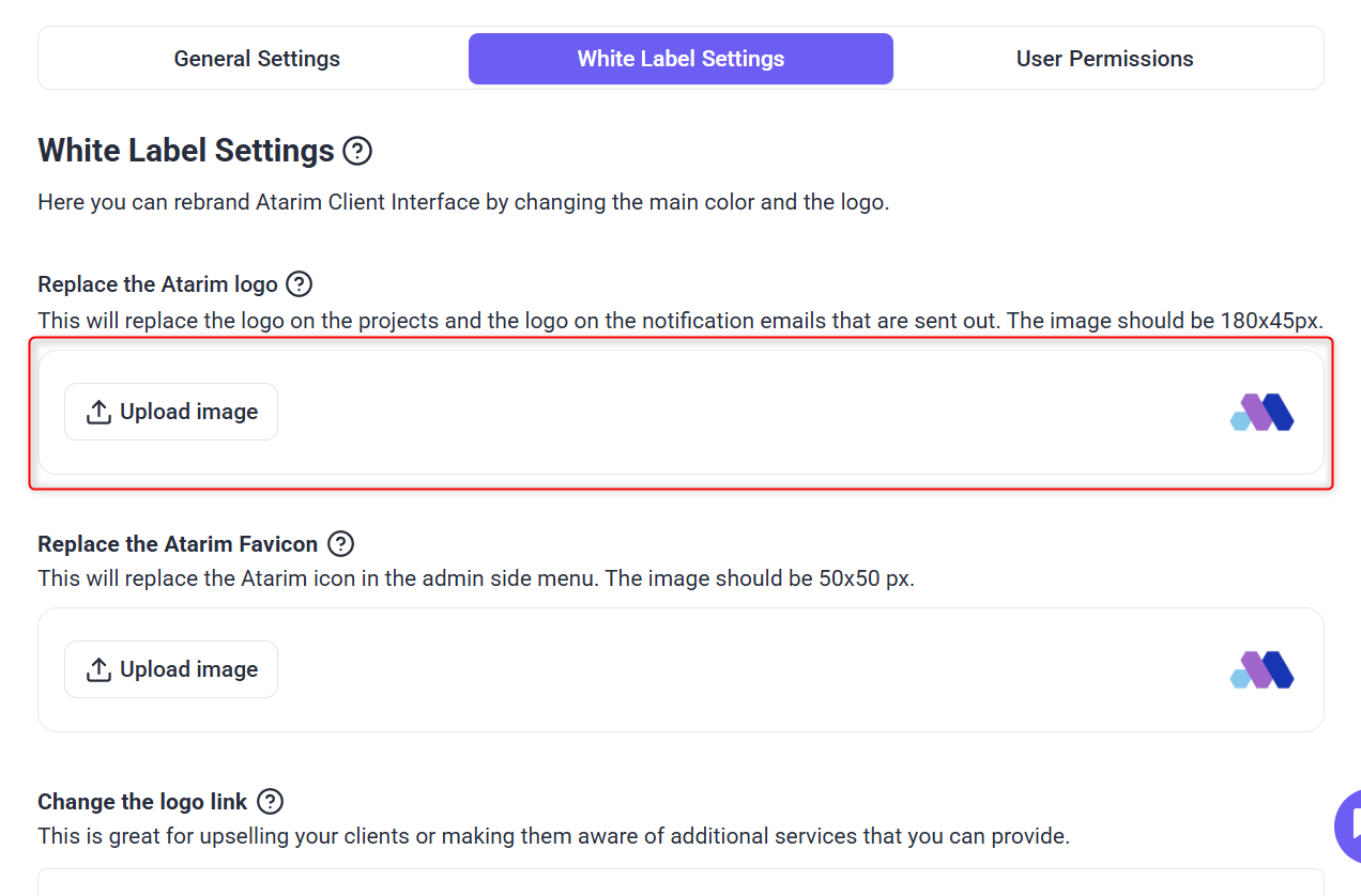 Tip: A horizontally oriented logo works best for the Atarim interface layout.